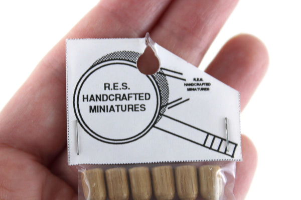 New vintage artisan-made miniature 1:12 scale set includes 6 wine goblets made out of wood by R.E.S Handcrafted Miniatures. Beautiful woodgrain, and the word "oak" is hand-written on the back of the package. Still in the original packaging and in excellent condition. Perfect for your dollhouse kitchen, dining room, or bar, or add a pretty fern or other plant instead and use it as a unique planter!