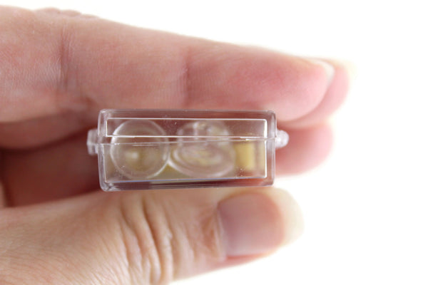 Vintage miniature 1:12 scale set includes a clear glass candy jar with removable lid and a small footed clear glass dish with a ruffled rim. By Chrysnbon and still in the original packaging. Excellent vintage condition and perfect for any room in your dollhouse!