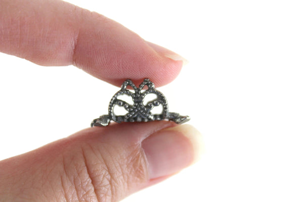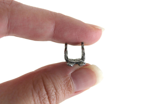 Beautiful vintage miniature napkin holder is made out of silver metal and it has lots of curves and carved details and includes 4 folded paper napkins. There is some curling and slight discoloration to the napkins that is consistent with age and/or use (please see photos), but these can either be used as-is or replaced with something similar. The set is in overall excellent vintage condition and perfect for your dollhouse kitchen or dining table!