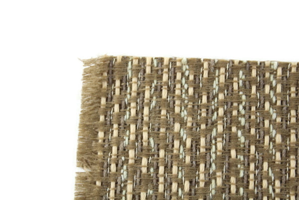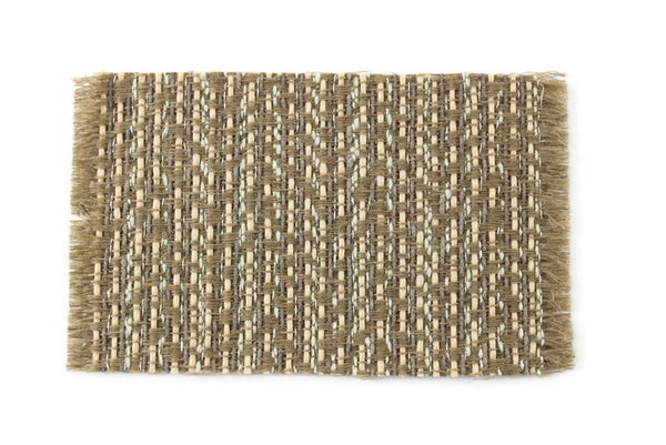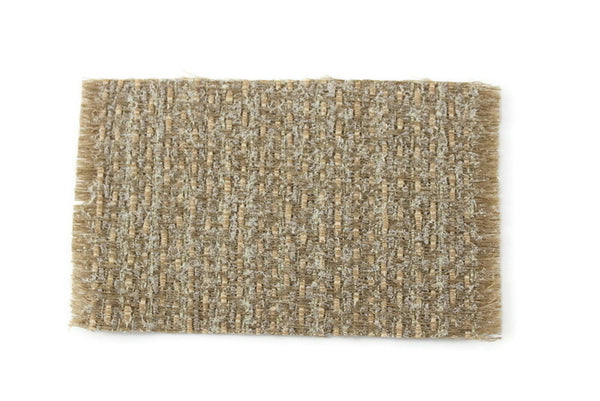 Vintage miniature rug is rectangular and has a striped and woven pattern in tan, beige, and a little bit of pale green with a matching fringe border on each side. Excellent vintage condition and perfect for any room in your dollhouse!
