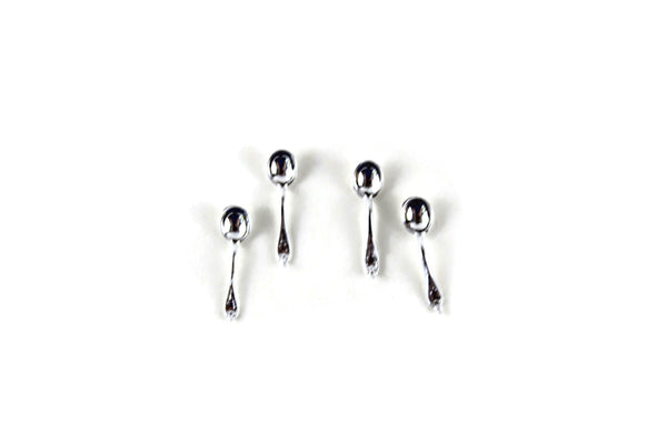 Set of 4 vintage miniature dollhouse soup spoons are lightweight and shiny silver. All pieces are in excellent vintage condition and perfect for your dollhouse!