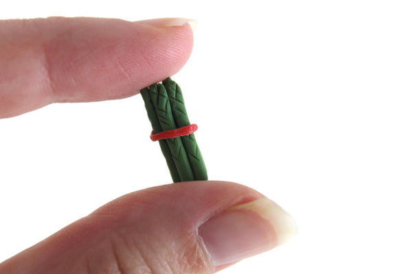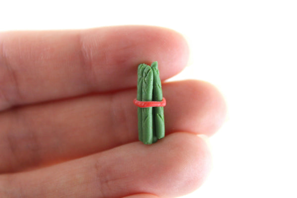 Vintage miniature 1:12 scale bunch of 6 green asparagus stems have textured tops and are banded together. Excellent vintage condition and perfect for your dollhouse kitchen counter or refrigerator, or use it in a grocery store, market or general store diorama!