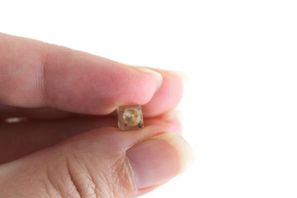 Measures a little over 1/8" x almost .25" x 7/8" tall.