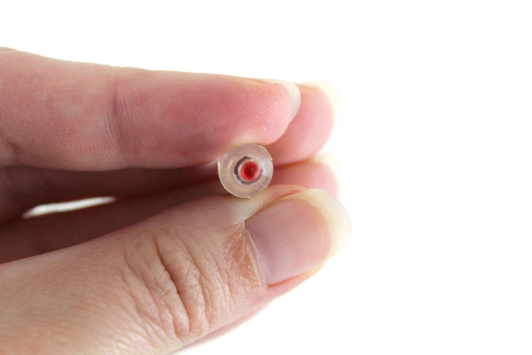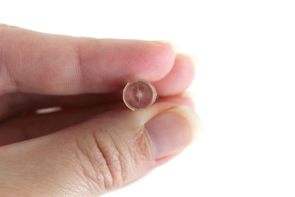 Measures a little over 1/8" x almost .25" x 7/8" tall.