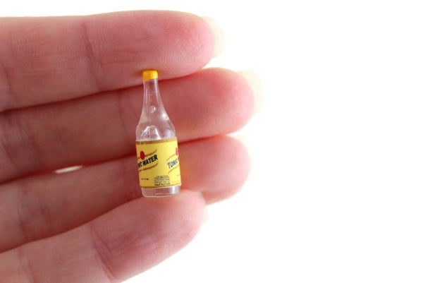 Amazing details! Vintage miniature 1:12 scale one liter bottle of Schwepp's brand tonic water is clear with a yellow cap and yellow, black, red and white paper label. liquor bottle is clear with a red and gold label and silver cap. Excellent vintage condition and perfect for your dollhouse kitchen, dining room, bar or drink cart! Please note that we have 2 of these available.