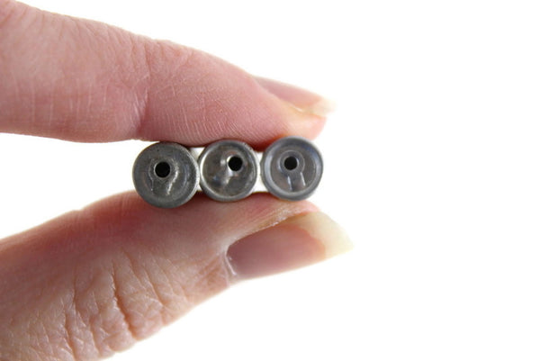 Each one measures a little over .25" in diameter x a little over 3/8" tall.