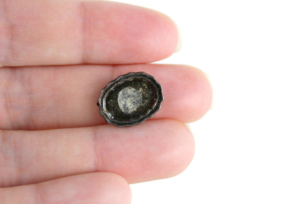 Vintage miniature cake plate is made out of clear glass and has a hobnail-style rim around the top and around the bottom of the base. Excellent vintage condition and perfect for your dollhouse kitchen or dining room, or use in a miniature bakery or café!