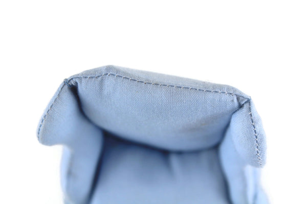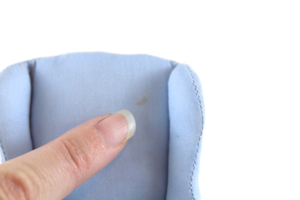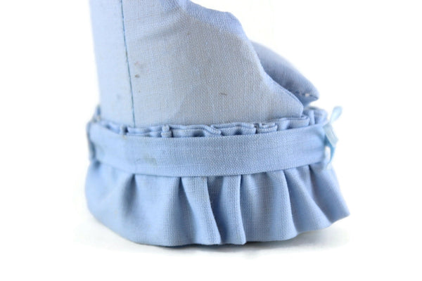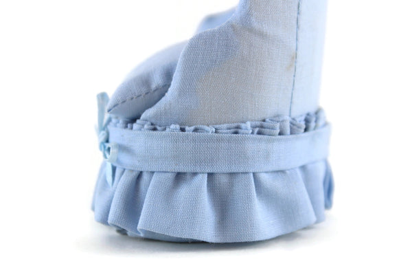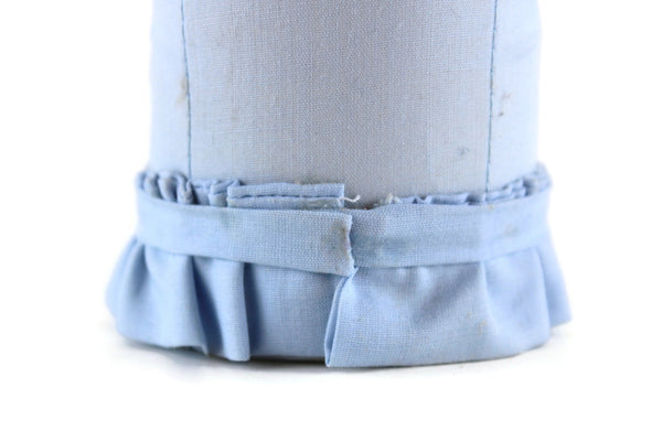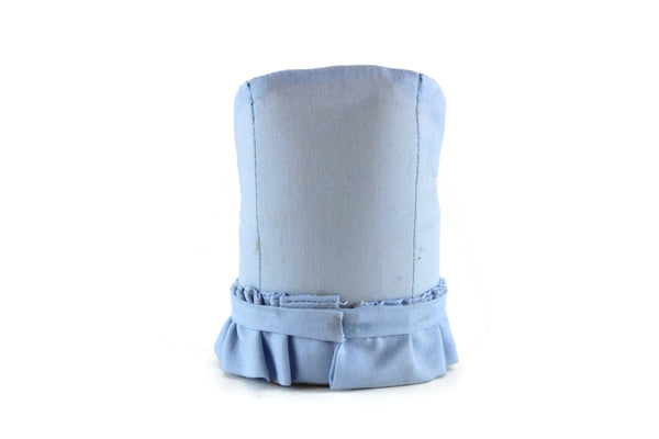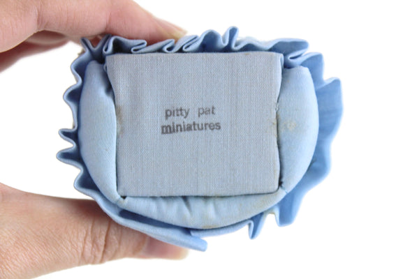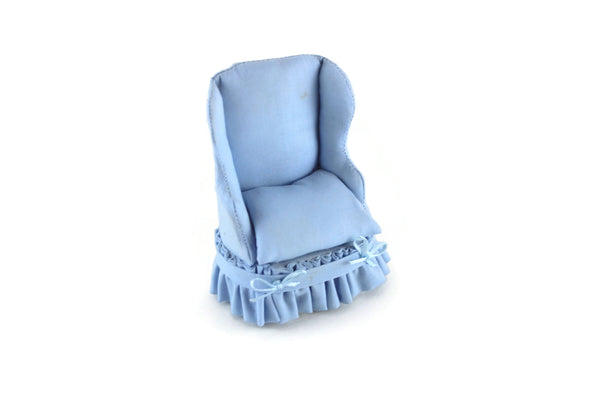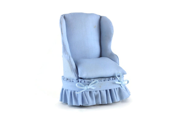 Vintage miniature artisan-made 1:12 scale wingback chair is a pretty shade of light blue and has a pleated skirt accented by two matching light blue satin bows. The bottom is stamped with "Pitty Pat Miniatures". There are some mild spots or discolorations on the chair (please see photos), but it's in overall great vintage condition and perfect for your dollhouse living room, bedroom, parlor, den, or study!