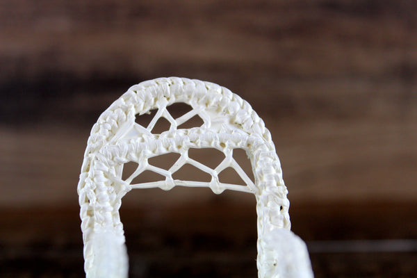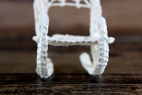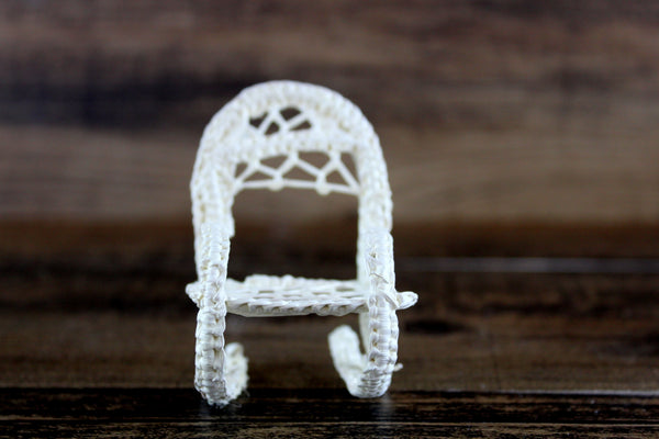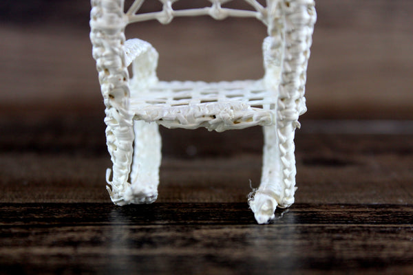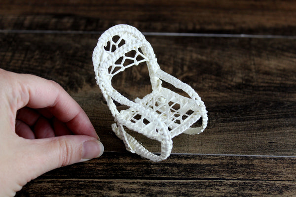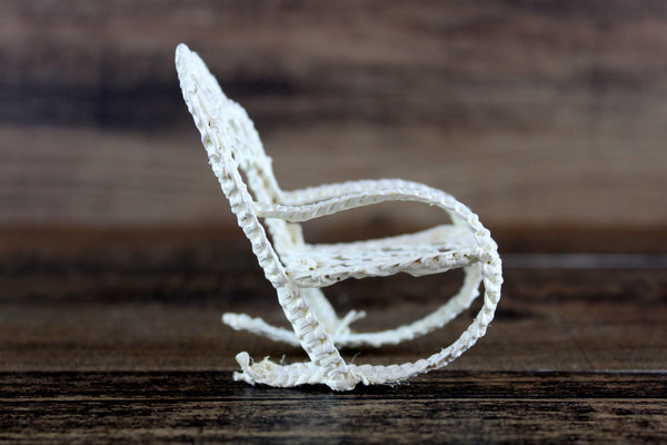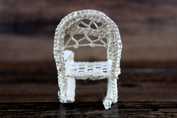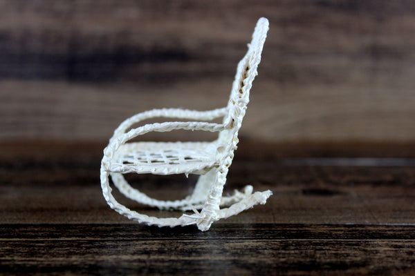 Vintage miniature 1:12 scale rocking chair is made out of beige wicker and has a round back. Great vintage condition and perfect for the porch, patio, or garden of a little one's first dollhouse!