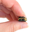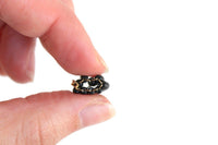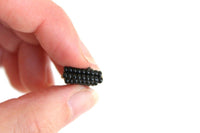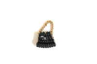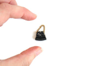 Tiny vintage miniature purse or handbag has black beading with gold chain details on the sides and the handle with a tiny gold bead in the center of the top. There's a bit of dried glue on one side (please see photos), but it's in otherwise excellent condition and perfect for any room in your dollhouse, or use it in a miniature shop. A rare and hard to find piece!